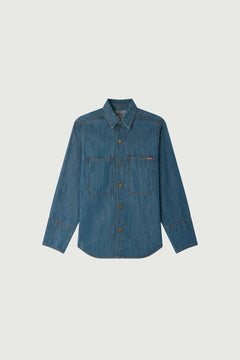GABIN is a greencast denim pant, loose straight cut, mid-rise waist. Subtle blue-green wash reveals unique nuances. "Soeur" label on back adds signature touch.